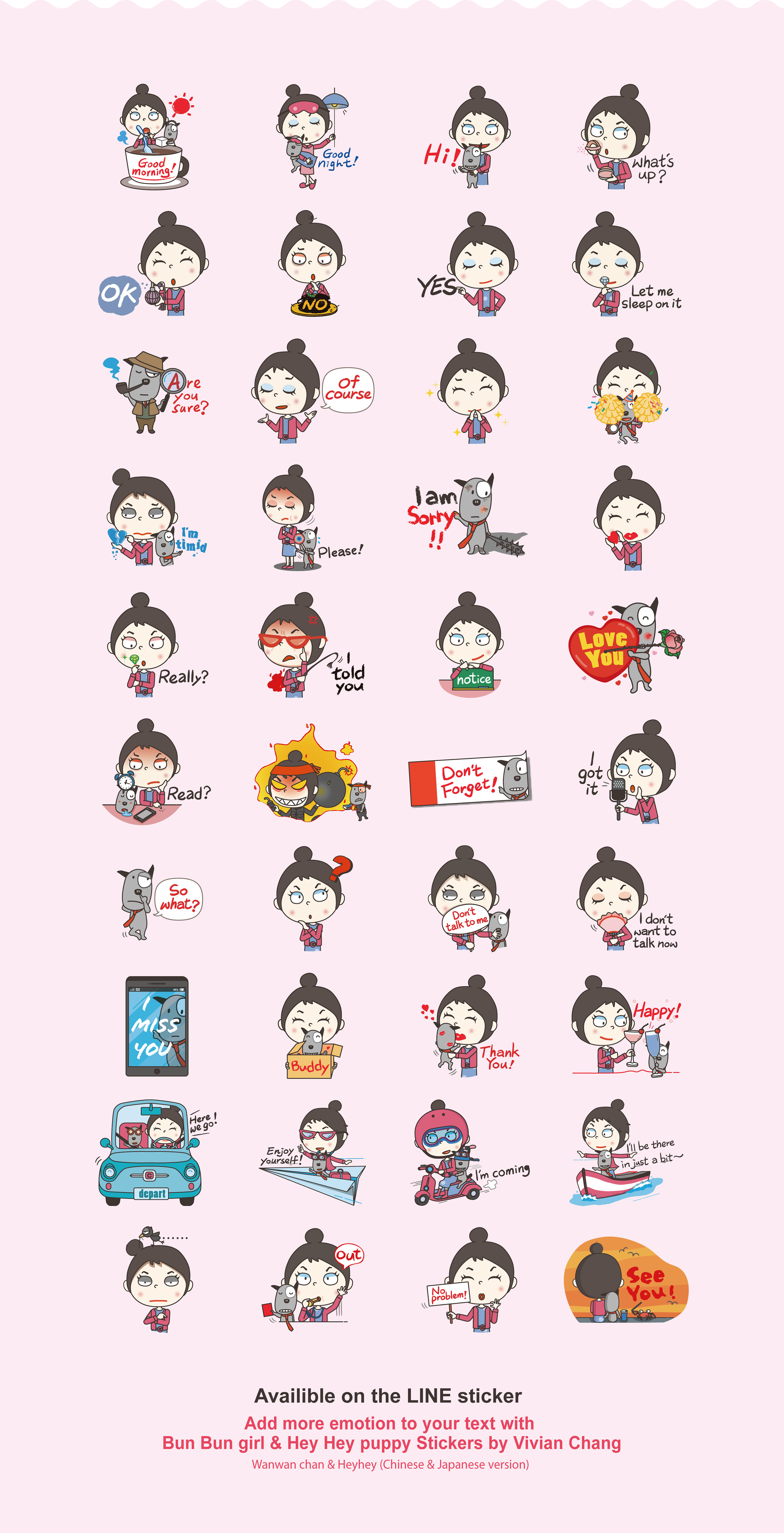 Line Stickers -Bun Bun girl & Hey Hey puppy